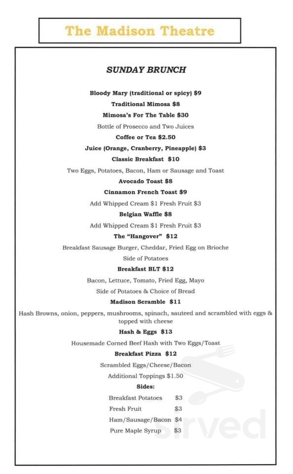 The Madison Theatre Menu In Albany New York Usa